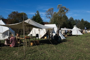 Die Lager der Ritter, Sippen, Reisenden und wilden Horden - hier erleben die Gäste Mittelalter pur und zum anfassen Die verschiedenen Lager zeigen damaliges Sippenleben, Handwerk, Kochen, Fechtkämpfe und vieles mehr.